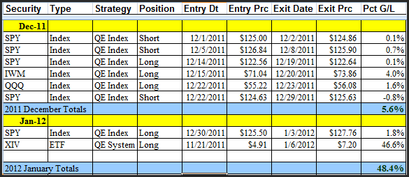2011 (and prior) Trade Idea Results from the QE Subscriber Letter