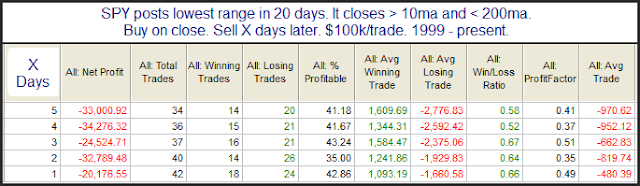 Currently the SPX is bouncing strongly off of an intermediate-term bottom. Initial thrusts from bottoms are often much riskier to short than similar thrusts in downtrends that don’t originate off a bottom. I’ve shown many examples of this in the Quantifiable Edges Subscriber Letter. Below is an example that simply looks at 3-day rallies in downtrends. The 1st set of results looks at times where the rally originated from somewhere other than a 50-day low. The 2nd set require a 50-day low.