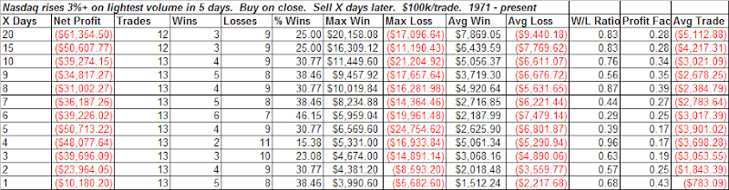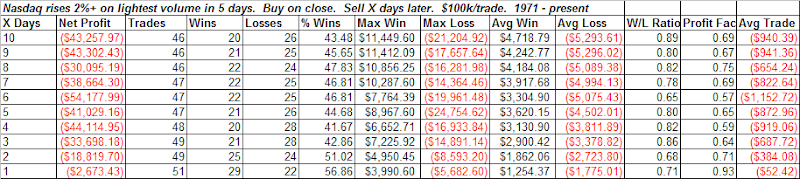 Ten out of 12 finished lower the next day. Below is a listing of all the trades: