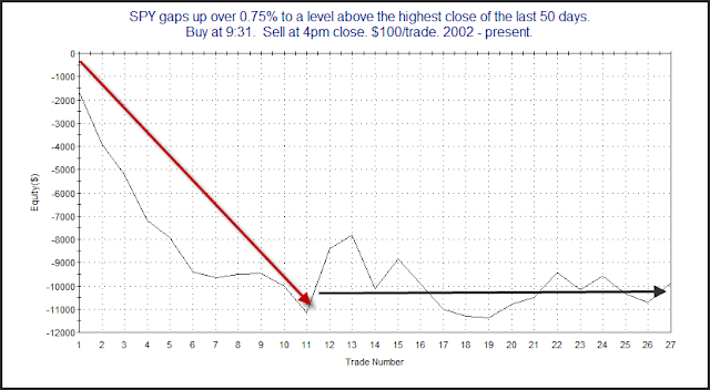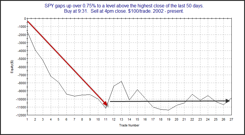 It appears over the last few years this setup has failed to deliver consistent downside movement. I looked at this a number of ways this morning and most of the equity curves looked like this. So be careful getting overcondfident trying to short this gap.