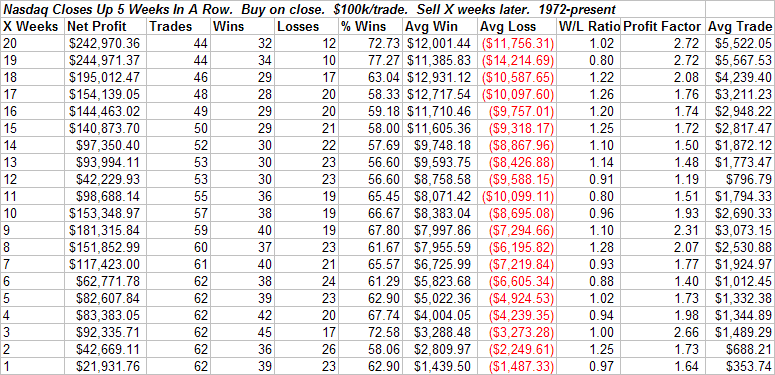 The Nasdaq Composite has now closed higher 5 weeks in a row. In July we saw how negative persistence can be difficult to overcome. Now we have an example of positive persistence:
